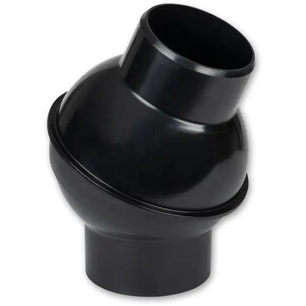 Axminster 100 mm 360° Svingbar Avsugskobling er en svingbar kobling for tilkobling av fleksibel avtrekksslange til maskiner eller avsugssystemer. Utformet som et 15° kuleledd som kan roteres fritt 360°, noe som gir fleksibel bevegelse og reduserer belastning på slangen. Konstruksjonen i solid ABS-plast gir lang levetid og stabil tetning mot støvlekkasje.
