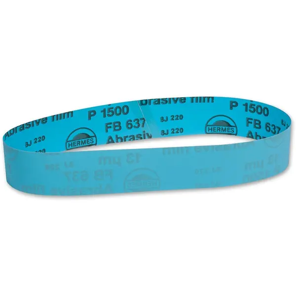 SLIPEBÅND Hermes FB637 Blue film er et slipebånd utviklet for svært fin overflatebehandling og skarphetsarbeid. Det bygger på en teknologi opprinnelig laget for superfinishing av stempelstenger, aksler og hydrauliske sylindere, og gir derfor et jevnt og polert resultat ved sliping av håndverktøy. Båndet består av aluminiumoksid som er resinbundet til en robust polyesterfilm, noe som gir høy slipeevne og stabilitet gjennom bruk.