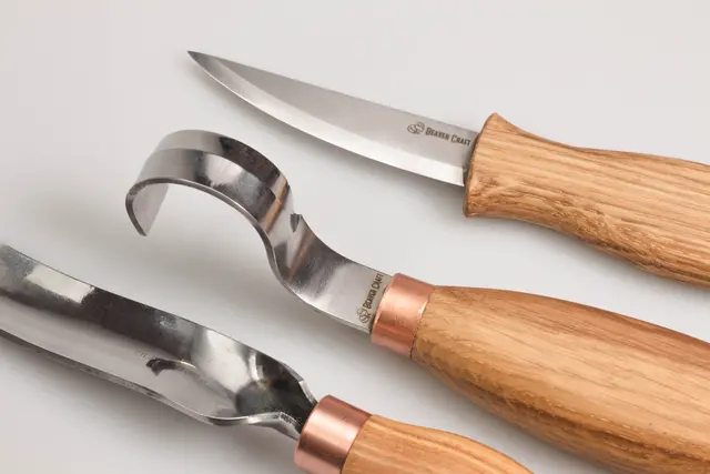 Knivsett S14 til treskje, høyrehendt – 2 kniver og 1 bøyd skulp. BeaverCraft