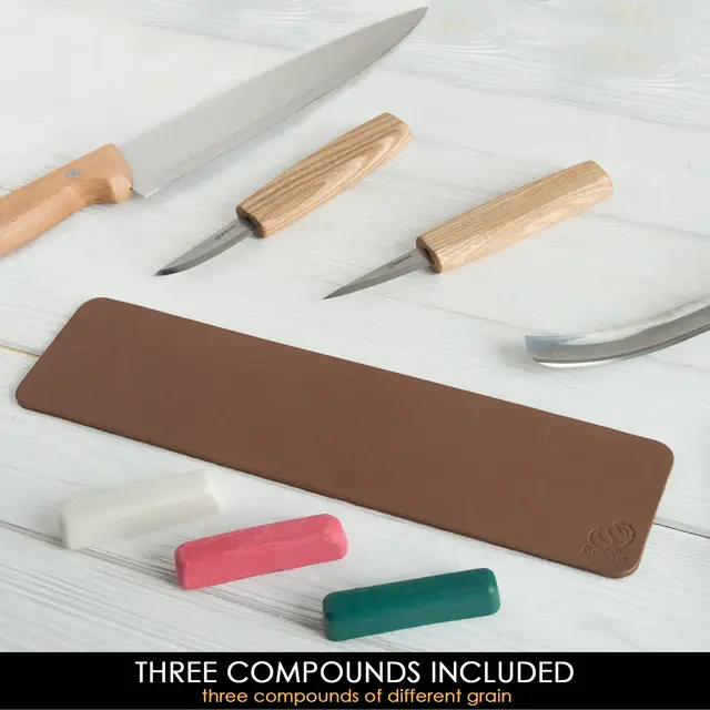 Settet leveres med 3 stk. forskjelige brynepasta med dertil slipekorning.