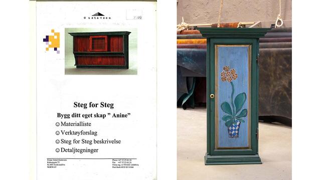 Et av de første "Steg for steg"-heftene, og skapet kursdeltakere lagde på Tronds freskurs.