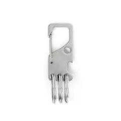 Flat karabinkrok i rustfritt stål med 3 stk. nøkkelringer og korketrekker integrert.