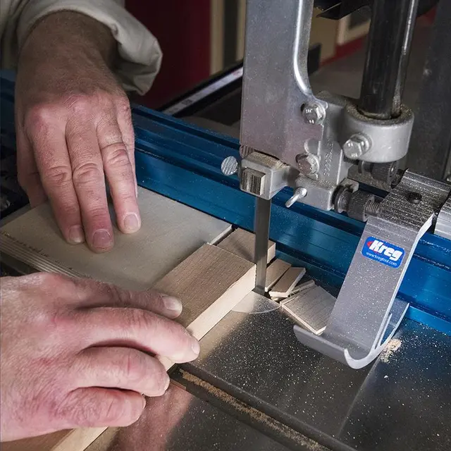 Anlegget passer direkte på de fleste 14" bandsager og kan tilpasses andre modeller ved å bore et ekstra hull i monteringsskinnen. T-sporene i anlegget gjør det også kompatibelt med stoppere og resaw-guider fra Kreg, noe som utvider bruksområdet ytterligere.