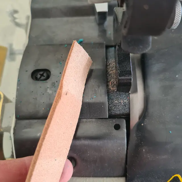 Man kan tynne lær helt opp til 50 mm bredde pr. kutt.