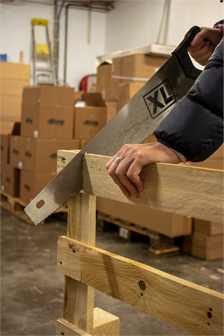 Her brukes en enkel håndsag til å sage til 3 lengder.