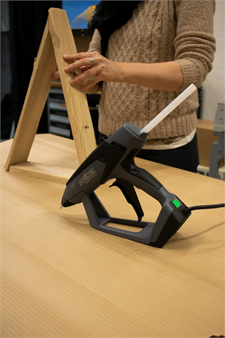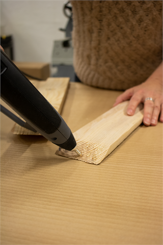 Test og se til at delene passer godt sammen før de så limes sammen med en smeltelimpistol.