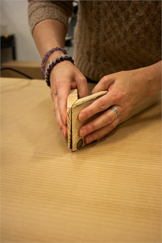 Bruk litt pussepapir for å pusse bort trefliser og jevne ut overflaten.