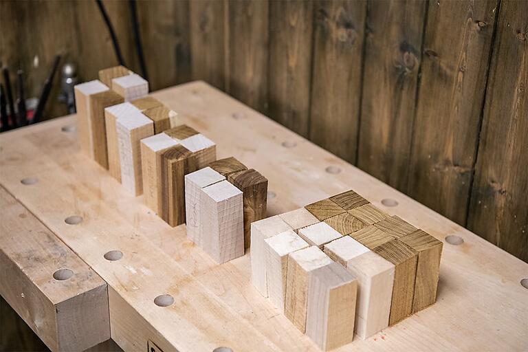 Nå når sjakkbrikkene er dreide kan du lage selve sjakkbrettet som hører til også!