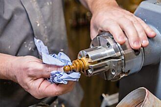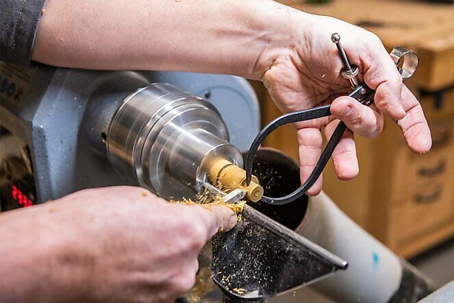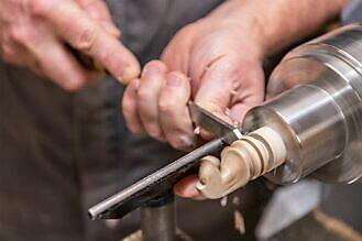 Løperen er ganske grei å dreie. Følg samme prosess som til bøndene. Husk at dette stykket er høyere og krever et vinklet snitt øverst.