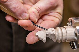 Rydd opp i formen med rasp og fil for å fjerne sagkuttene.