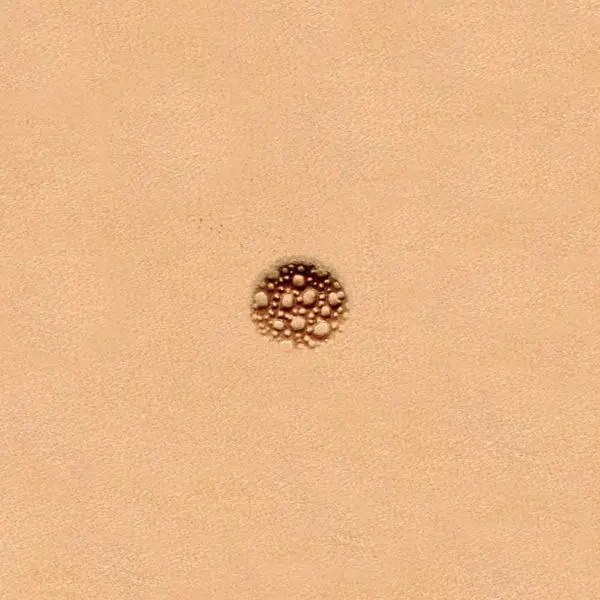Punsel med prikker, flott til å lage forsenkede bakgrunner eller andre dekorer. Bruk nylon -eller råhudklubbe på slike verktøy. Bruk marmor / steinblokk under læret når man punsler for å få bet mulig effekt og resultat.