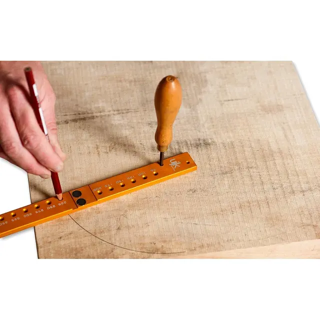 Ved hjelp av en blyant og hullene i verktøyet, er det lett å tegne sirkler - mellom 75 og 400mm i 25mm intervaller.